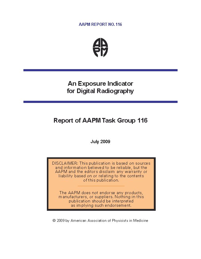 TG116 report 116 An Exposure Indicator for Digital Radiography AAPM, 2009 | ![]() | |