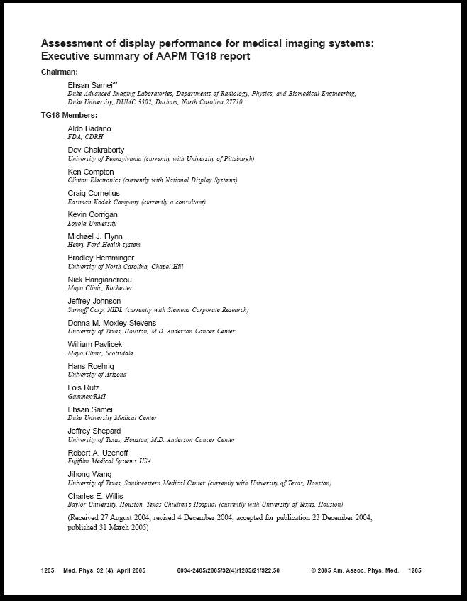 TG18 On-Line Report No: 03 Assessment of Display Performance for Medical Imaging Systems AAPM, 2005 április | ![]() | |