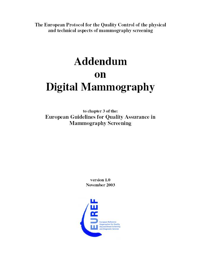 Addendum | Addendum on Digital Mammography To chapter 3 of the: European Guidelines for Quality Assurance in Mammography Screening EUREF 2003 november | ![]() |