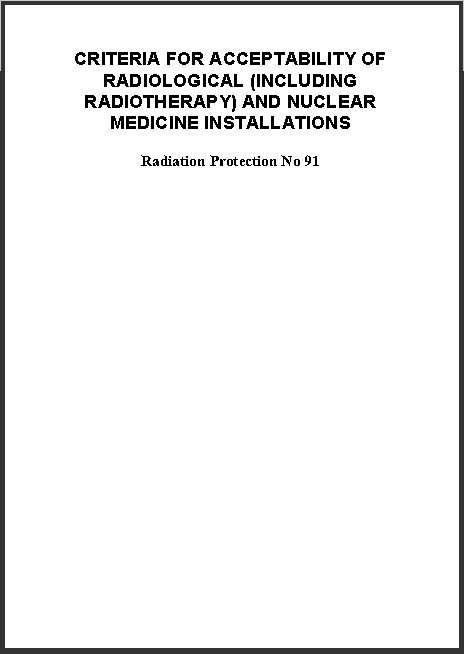 RP91 | Criteria for Acceptability of Radiologocal, Nuclear Medicine and Radiotheraphy Equipment European Comission - RP91 : 1999 | ![]() |